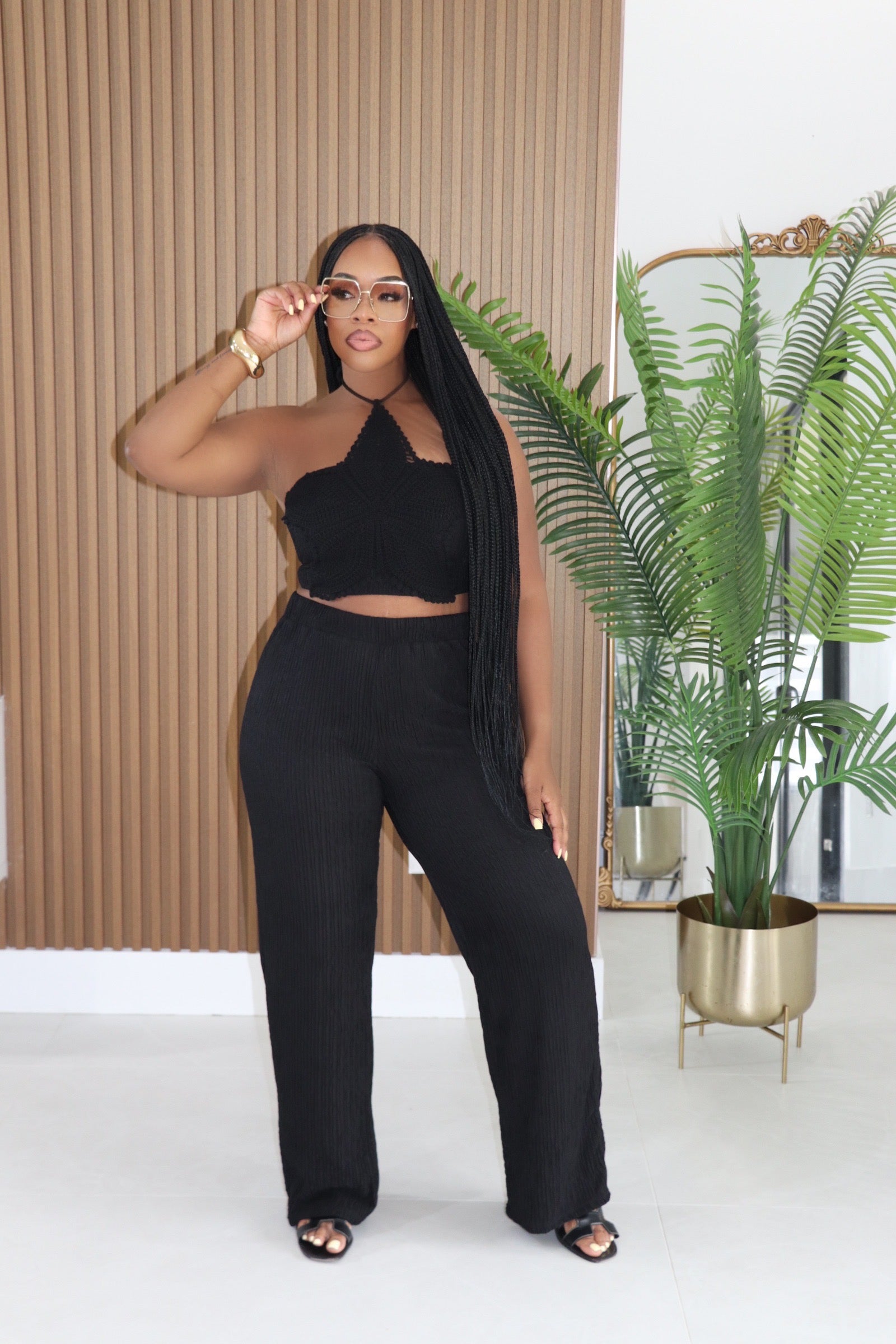 Flower Crochet Halter Top And Pants Set