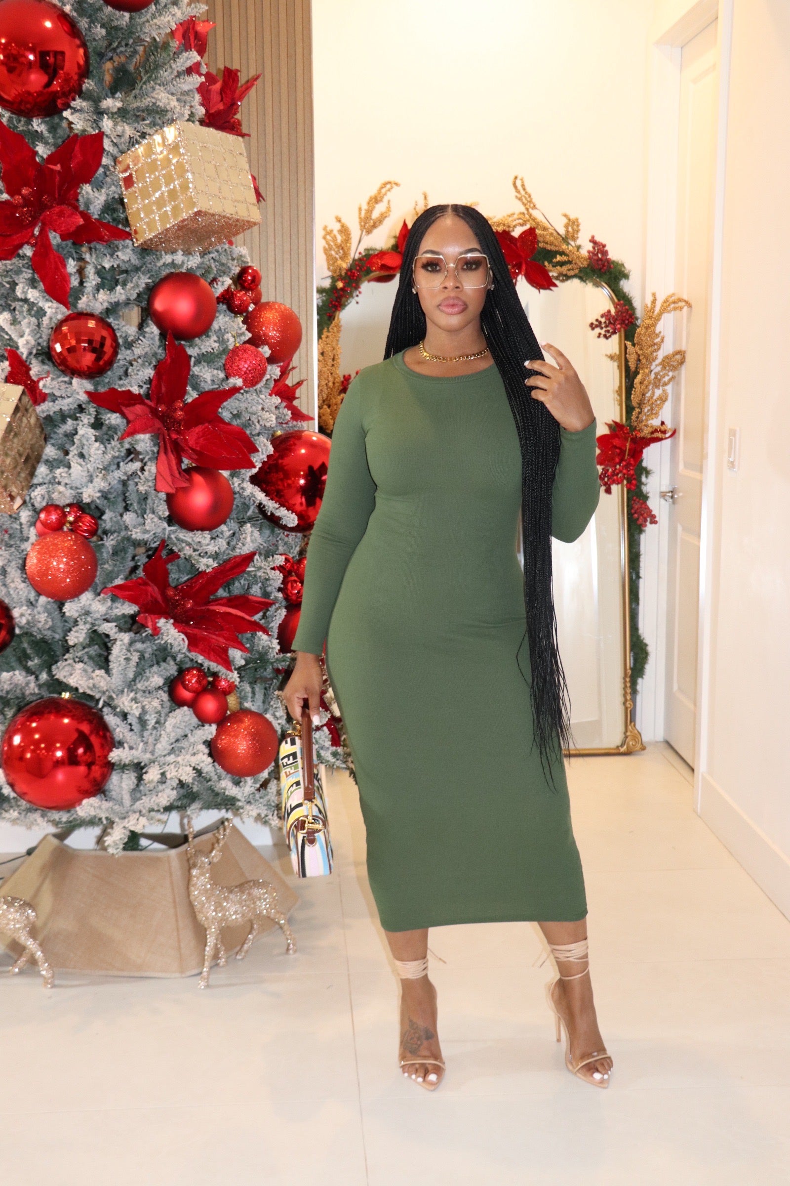 The “On the Go” Midi Dress (Olive)